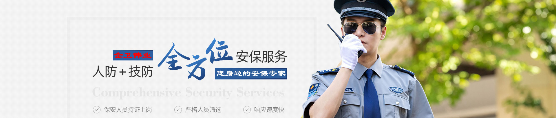 高素質(zhì)的專業(yè)保安隊伍 保一方平安 創(chuàng)優(yōu)質(zhì)服務(wù)